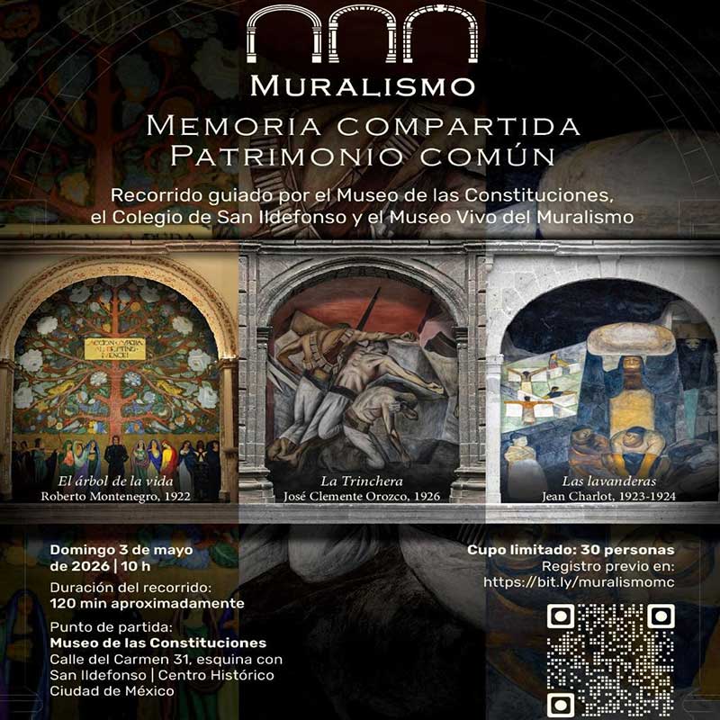 A partir de esta visión, el Museo de las Constituciones ubicado en el Antiguo Templo de San Pedro y San Pablo; el Colegio de San Ildefonso; y el Museo Vivo del Muralismo, en la Secretaría de Educación Pública, recintos que resguardan este invaluable acervo, abren sus puertas para invitar al público a transitar esta historia a través de Muralismo. Memoria compartida, patrimonio común. Este circuito guiado pone en diálogo los espacios donde la corriente muralista tomó forma, proponiendo un recorrido que va más allá de la visita, dando un acercamiento que permite comprender la dimensión colectiva de un proyecto cultural que encontró en estos edificios su primer territorio de acción.