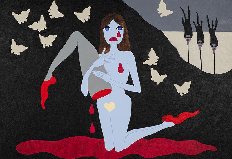 Sus obras presentan manifestaciones físicas de cómo se sintieron realmente estas situaciones. Los cuerpos, a menudo imperfectos y desconcertantes en sus pinturas y dibujos, se convierten en refugios para emociones difíciles de contener.