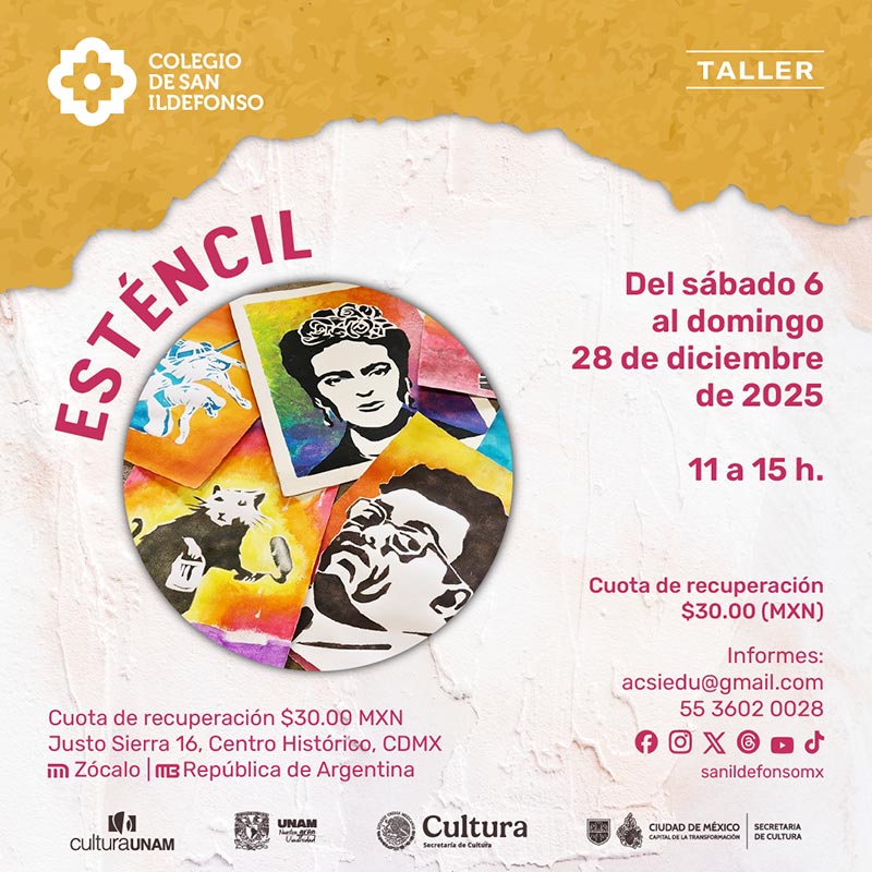 Tomando como inspiración algunos personajes históricos y los murales del Colegio de San Ildefonso, el público participante realizará una colorida obra con un esténcil.