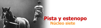 | Pista y estenopo ilustra la antigua fascinación de la fotografía por el circo y el carrusel, dos cabalgatas sublimes. En este apartado se expresa el gusto especial de representar un mundo donde todo es posible. El circo, el caballo y la fotografía es una trilogía que permite, en el discurso de esta exposición, reforzar la idea de fijeza y movimiento. Se exhiben reproducciones amplificadas de Manuel Álvarez Bravo, Brassaï, Christian Staub y de un fotógrafo no identificado, además de materiales históricos del circo mexicano. Esta sala está ambientada con una instalación multimedia de una pista de circo. |