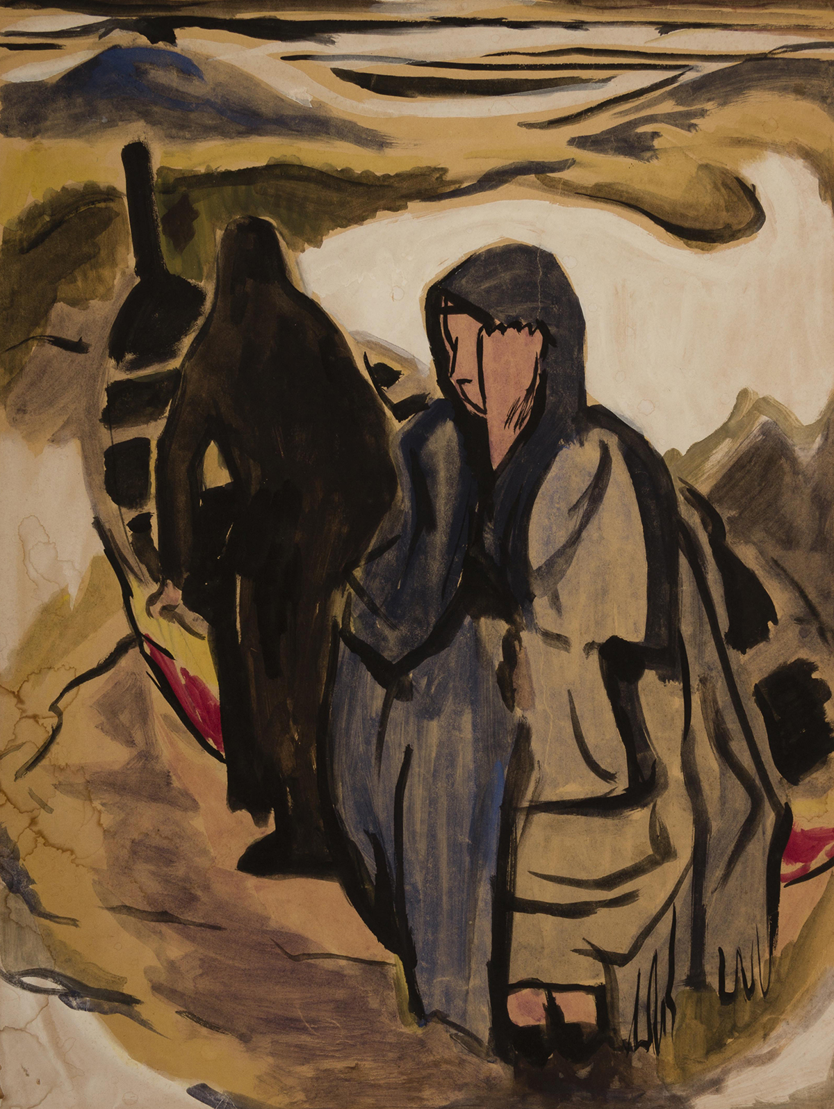 Las reflexiones artísticas de Saemisch no se limitan al contexto bélico, también se extienden a diversas manifestaciones del dolor humano ante la pérdida y la desolación. La serie Mujer portuguesa se inspira en la tragedia ocurrida en un pueblo pesquero de Portugal, donde el mar se llevó a los pescadores.