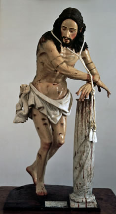 Diego Quispe Curo Cristo en la columna F. 1667 Potosí Cedro policromado. Provincia Misionera San Antonio en Bolivia, Museo del Convento de la Recoleta, Sucre, Bolivia.