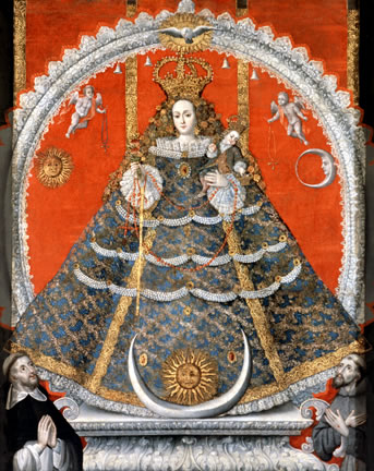 Luís Niño Virgen del Rosario con Santo Domingo y San Francisco de Asís F. 1737 Potosí Óleo sobre tela. Museo de la Casa Nacional de Moneda, Fundación Cultural BCB, Potosí, Bolivia.